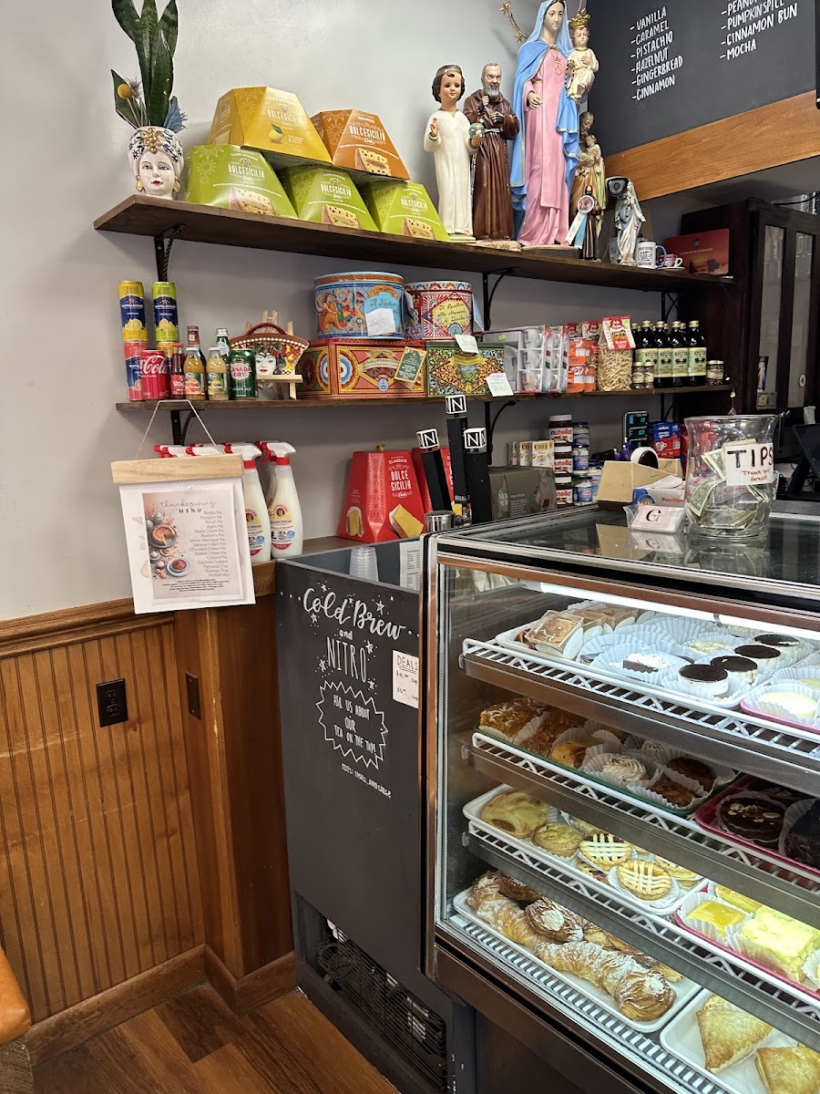 Italian pastries and coffee in a casual setting. Several tables inside and outside. Quick service, sometimes a line but it goes fairly fast. All I can say is wow... highly recommend. I had several items, including some not pictured... favs were the cannoli (filled to order) and the fig bar. Coffee was to die for. Great spot to relax with company and enjoy some desserts. Absolutely stand out.
